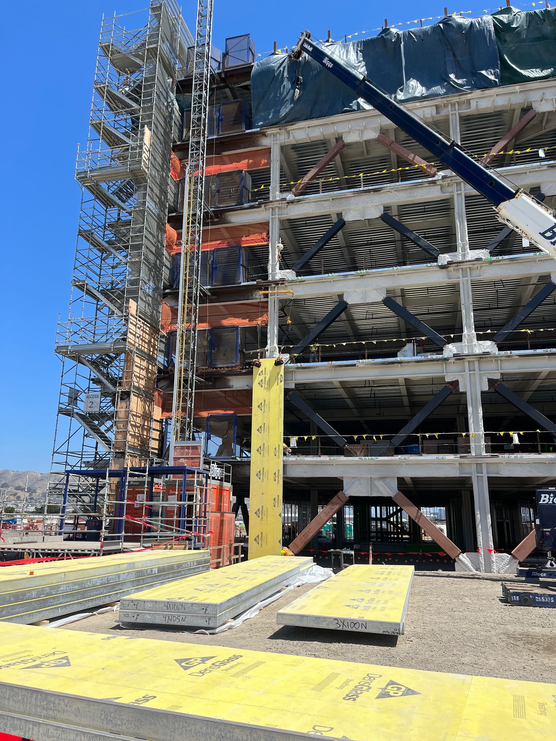 Digital Building Components prefabricated 70,000 square feet of our exterior sheathed panels. Our design team used 35-foot panels to maximize installation efficiency, reducing the overall construction schedule. In addition, our team stacked the panels at full height to minimize loading on the building slab edges.